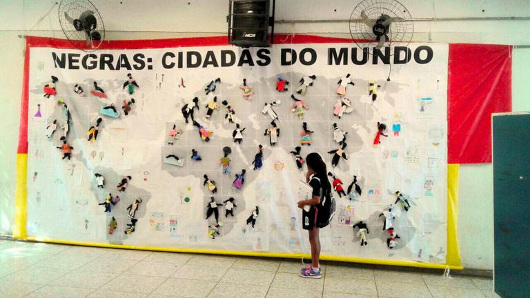 Por quê? É mais fácil didaticamente do jeito que está, a gente não tenciona nada disso, e achar que ele tá fazendo aquele cabelo liso só porque ele acha. Não, não é só o que ele acha, é o que ele tem de referência, que foi colocado historicamente num currículo para que ele respeitasse e valorizasse.”