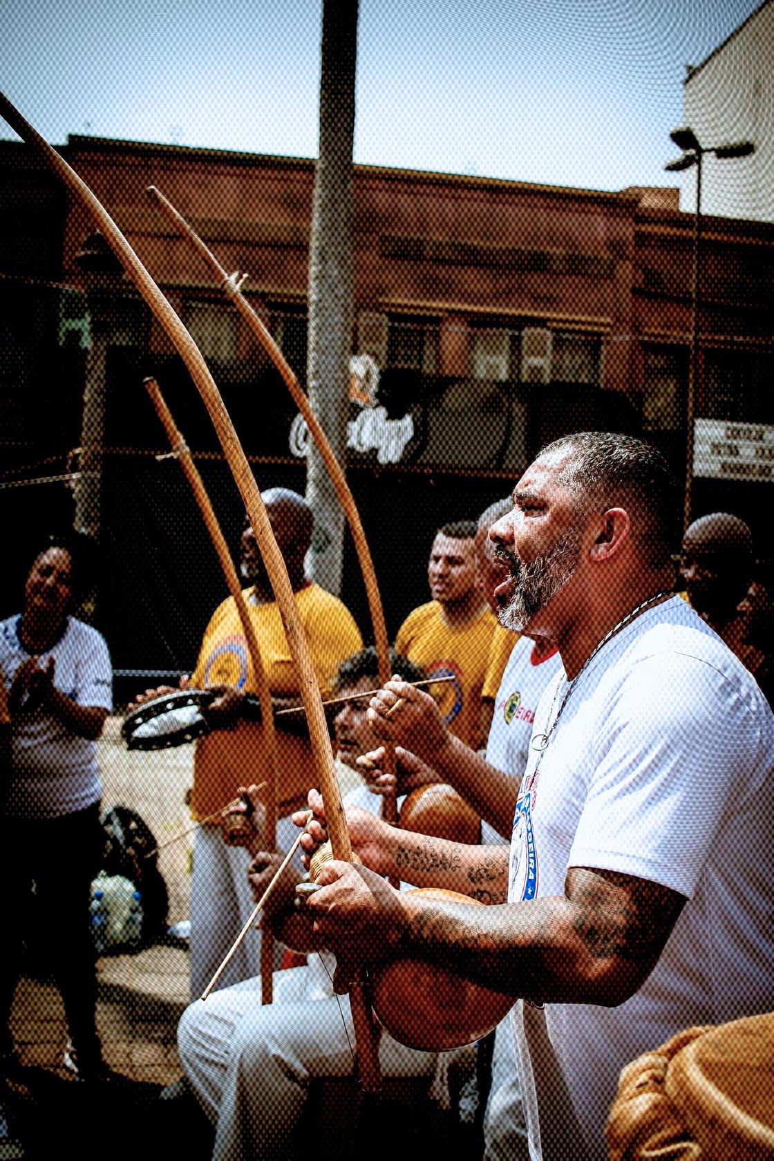 A roda completa é composta por três berimbaus (o Gunga, o Médio e o Viola), além do pandeiro, reco-reco, agogô e atabaque. Um combinado de batuques, harmonias e timbres se junta e compartilha vivências nessa simplicidade aparente que esconde uma riqueza ancestral: cada instrumento tem sua função, sua voz, sua energia.