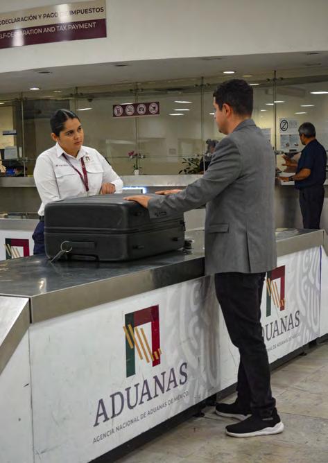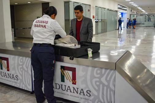 Dicha Agencia, a través de sus inspectores y en presencia de personal de la Secretaría de Marina y de seguridad del aeropuerto, llevan a cabo la revisión del equipaje con máquinas de rayos X, para constatar que lo declarado por los pasajeros sea acorde con el contenido de sus equipajes.