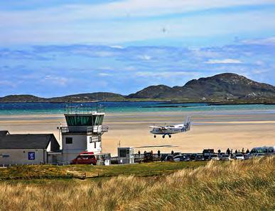 El Aeropuerto de Barra, en Escocia, es conocido por tener una pista de aterrizaje en la playa, y sus vuelos programados se adaptan a las mareas. En lugar de una terminal convencional, los pasajeros son recibidos en una pequeña sala de espera ubicada cerca de la playa.