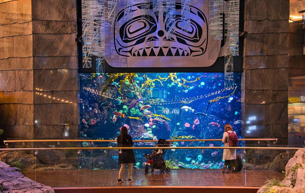 El Aeropuerto Internacional de Vancouver tiene un gran acuario con especies marinas locales dentro de una de sus terminales.