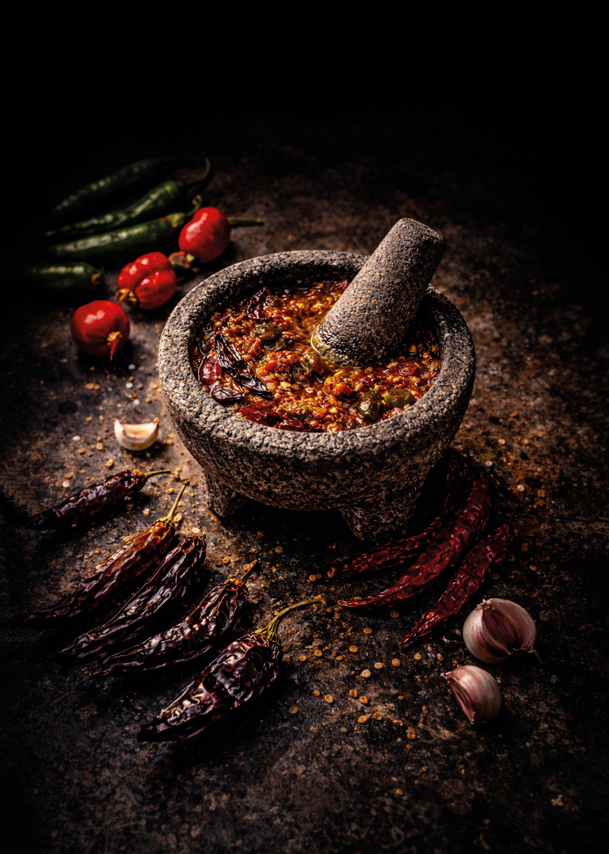 Este amor por lo picante ha trascendido fronteras y hoy la gastronomía mexicana se reconoce mundialmente, en parte, por su audacia gustativa, ya sea un mole delicadamente balanceado o un aguachile que provoca ya no querer comer más pero aun así hacerlo porque se disfruta del momento. El picante sigue siendo una expresión viva de nuestra cultura, una cultura compleja, apasionada y profundamente arraigada en nuestra historia culinaria. ▼
