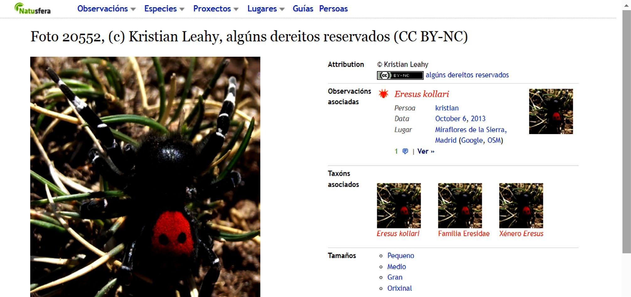 a) Grupos considerados. Ao igual que iNaturalist e Observation.org, aceita registos de todo tipo de seres vivos (Figura 1), fornecendo ademais umha ficha para cada espécie e para cada observaçom (Figura 2).