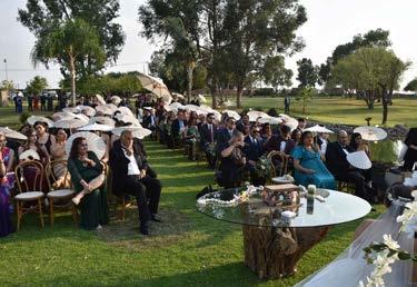 Geo y Diego unieron sus vidas en una hermosa ceremonia en la Hacienda Santa Catrina la cual estuvo llena de emotivos detalles. Más tarde ahí mismo, ofrecieron una elegante recepción, decorada por Luis Lencina con una gran carpa con telas y cientos de flores blancas. Esa tarde los distinguidos invitados disfrutaron una deliciosa comida, más tarde se divirtieron bailando con música de Dj.