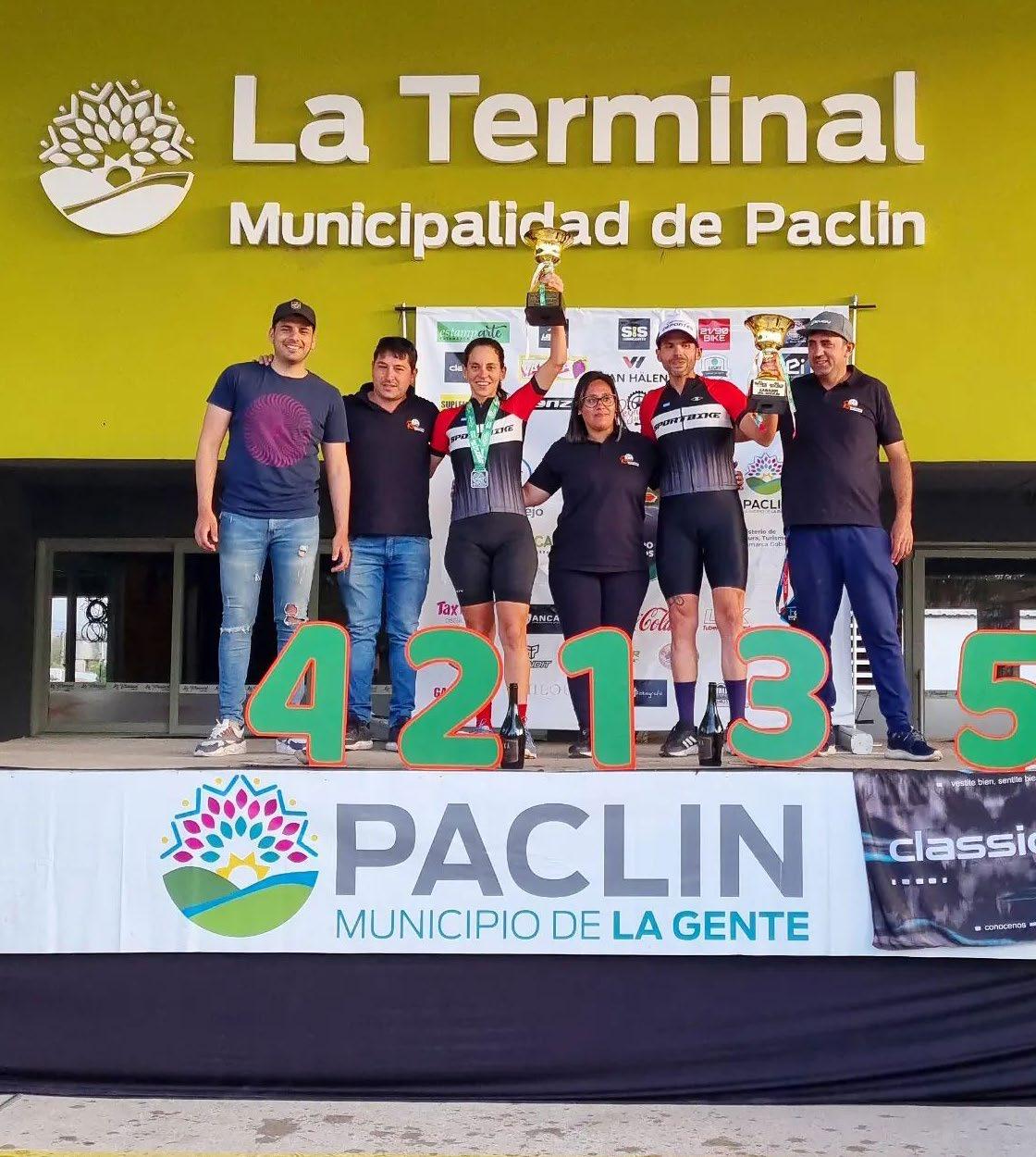 parejo que nos permitió conectar a los elite. Después pude hacer una fuga de 25 kilómetros en solitario y llegamos al sprint final, que me permitió ganar mi categoría y la general. Este triunfo va para mi novia, mi familia, y mi entrenador Ro drigo Darnay, que son los que siempre están a mi lado”. De la mano del equipo 3F, las Municipalidades de Paclín y Va lle Viejo, Catamarca se vistió de fiesta para vivir una carrera que tiene futuro de Clásica….