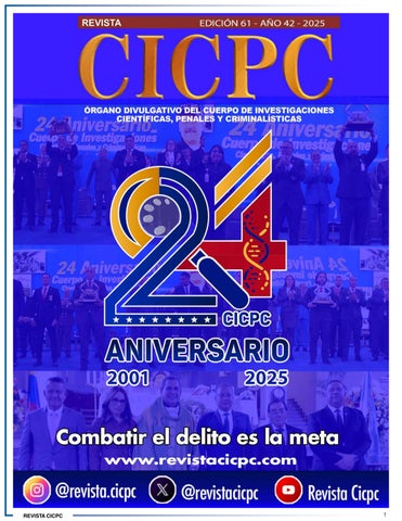 Una vez más todo el personal que labora en los distintos niveles de la Revista CICPC nos sentimos muy complacidos de seguir trabajando en la difusión de las acciones emprendidas por el Cuerpo de Investigaciones, Científicas, Penales y Criminalísticas. En esta ocasión, una edición dedicada muy especialmente a enaltecer la conmemoración del Día del Policía que se celebra cada año el 16 de Julio, así como el Día del Criminalista, una profesión que cada día viene cobrando mayor fuerza en nuestra sociedad debido al alto grado de responsabilidad y compromiso en conjunto con el poder judicial en el combate contra la criminalidad.