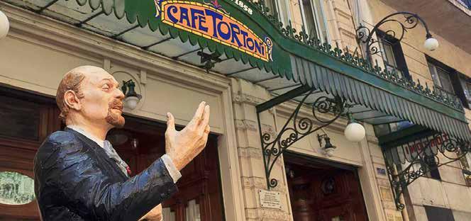 cal a la calle Rivadavia 174/76/78, de la antigua numeración, y el 26 de octubre de 1894, unos tres meses después de que se abriera la Avenida de Mayo, inauguró en esa arteria una entrada para el Café que además, fue el primero de los locales porteños en instalar mesas y sillas en la vereda. Es la cantina café más antigua y emblemática de Buenos Aires, aún con mesas de mármol, vitrales, muebles clásicos, funcionó y funciona como escenario de importantes películas, series y shows musicales, hay shows de jazz / tango, muy frecuentado por su chocolate con churros, Tortoni declarado patrimonio histórico, fue punto de encuentro de figuras como Alfonsina Storni, Jorge Luis Borges y Carlos Gardel; a través de los años, de manera espontánea y gentil, muchos artistas importantes han dejado la impronta de su talento en los muros del Café, con obras que ilustran pasajes de su rica historia o inmortalizan presencias legendarias, más de 100 cuadros y esculturas convierten a Tortoni no sólo en un recinto gastronómico, sino tambien en un museo en donde detenerse para apreciar las obras expuestas, no te lo puedes perder.