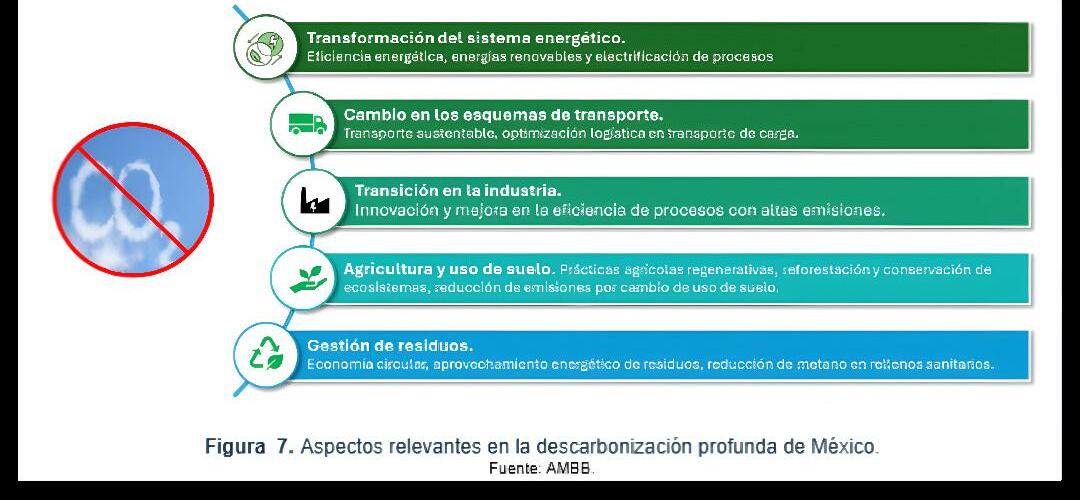 En la Figura 7 se muestran de manera resumida los distintos aspectos relevantes que deben ser considerados en las estrategias de descarbonización profunda de México.