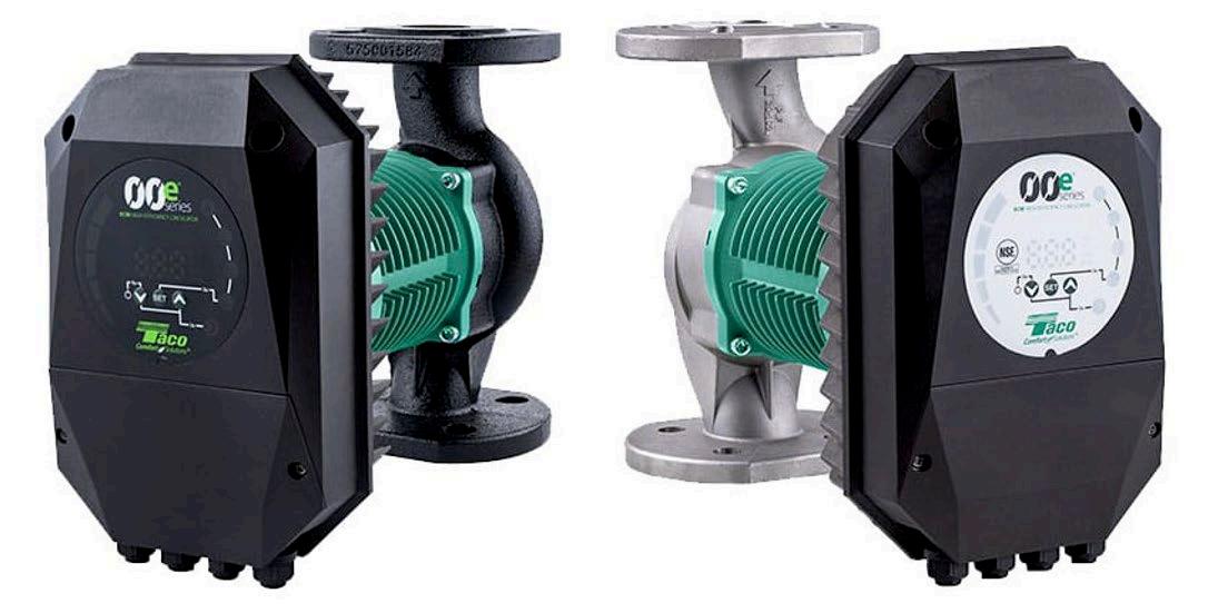 EFICIENCIA. La serie Taco 00eVR son ideales para aplicaciones de HVAC y agua potable. Constan de rotor húmedo y autodetección. Amplia gama de modelos con opciones de cabeza baja, media o alta que proporcionan presiones de cabeza diferenciales de hasta 65 pies y rangos de flujo de hasta 320 GPM. La comunicación BMS con Modbus, BACnet, 0-10 V CC y PWM es estándar, mientras que la tecnología ECM de alta eficiencia reduce el consumo de energía hasta en un 85 %. Los modelos de acero inoxidable tienen clasificación de calor doméstico y comercial NSF 61 y 372. www.tacocomfort.com