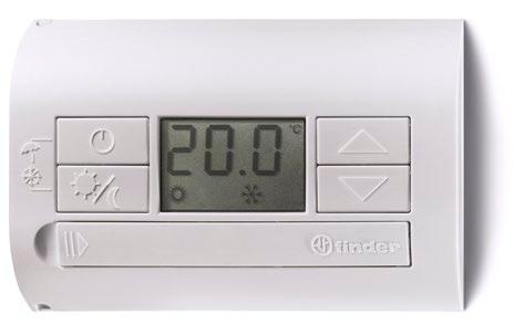 CLIMATIZACIÓN. Ideales para automatización de edificios. 1T.01: Termostato de pared. Conmutado. Color blanco. Temperatura ajustable de +7ºC a +30ºC y luz de indicación de funcionamiento del sistema. Disponible en las versiones: 1T.01.1 con interruptor ON / OFF, temperatura ajustable +7 a +30°C, luz de indicación de funcionamiento del sistema; 1T.01.2 con interruptor verano / invierno, temperatura ajustable +7 a +30°C, luz de indicación de funcionamiento del sistema; 1T31: Termostato de pared digital disponible en 2 versiones de color, en blanco o negro. Características: 2 modos de funcionamiento día / noche, temperatura ajustable +5ºC a +37°C, alimentado por 2 baterías AAA de 1,5V (3 V CC), bloqueo del dispositivo. Funciones: anticongelación ajustable +2°C a +8°C. / apagado / verano / invierno. 1 contacto de salida 5A 250 V AC. Diferencial térmico seleccionable (0.2 a 0.5°C). www.findernet.com/es/argentina