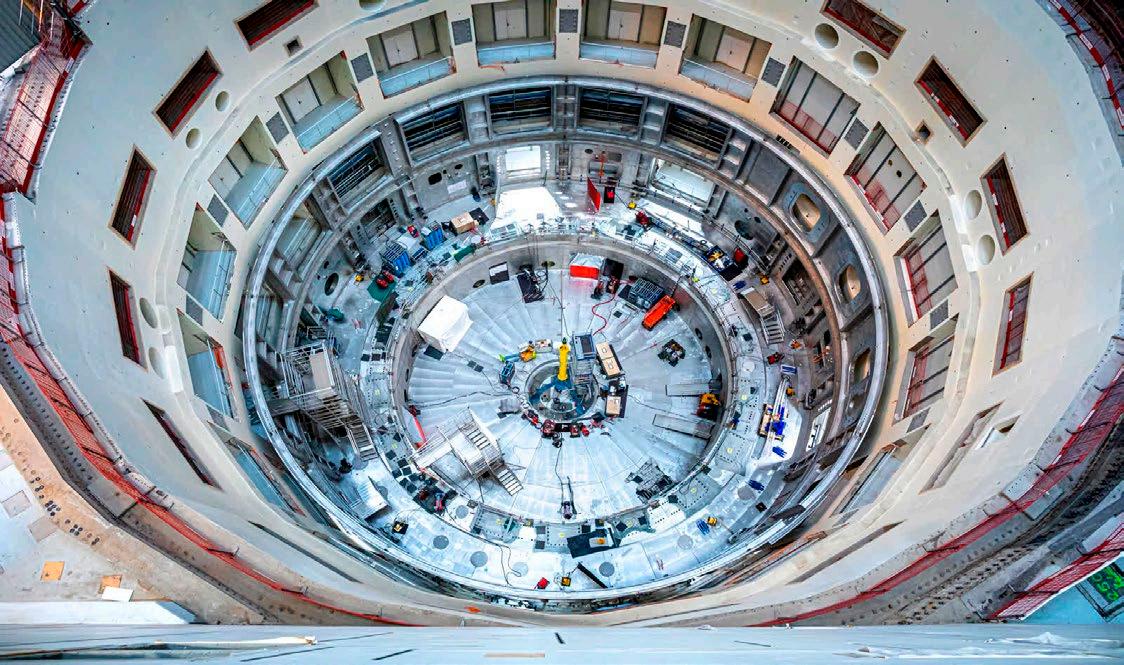 Una vista desde la parte superior de la cámara Tokamak. El Tokamak finalmente pesará 23,000 toneladas, el peso combinado de tres torres Eiffel.