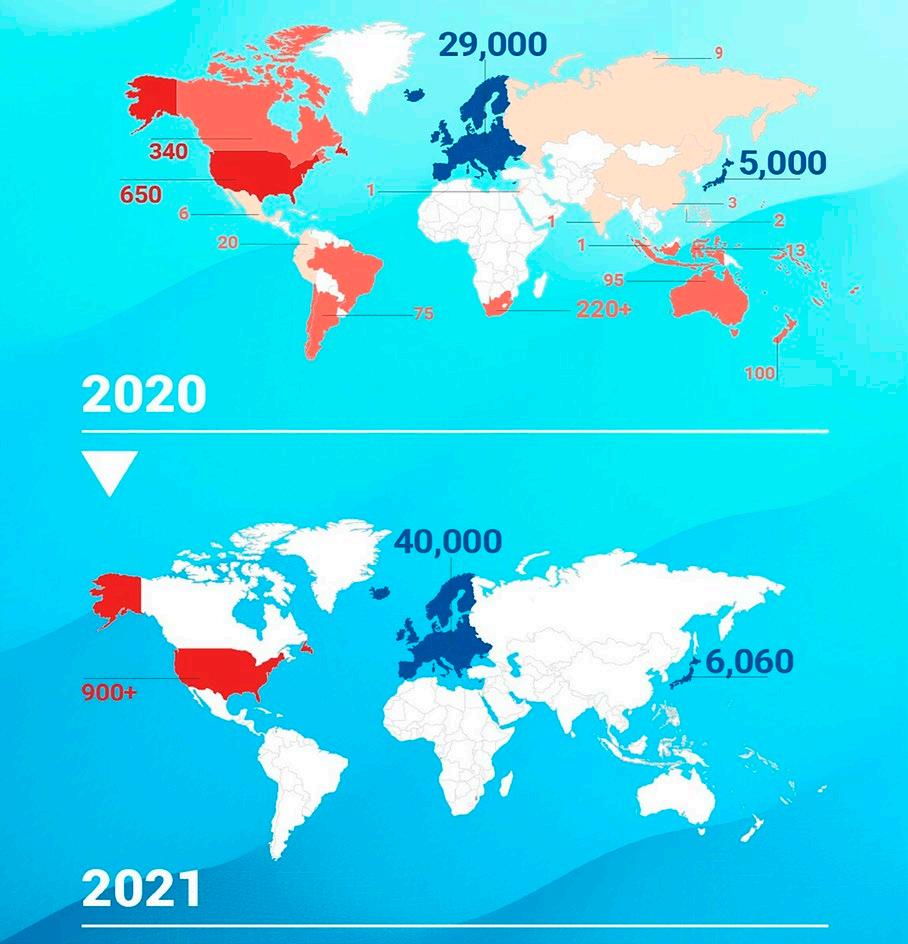 44 MERCADO • Adopción crecien- te de refrigerantes naturales en la refrigeración comercial. Un informe reciente estima el número de sistemas de refrigeración comercial que utilizan R744 (CO2) o hidrocarburos en Europa y en todo el mundo.
