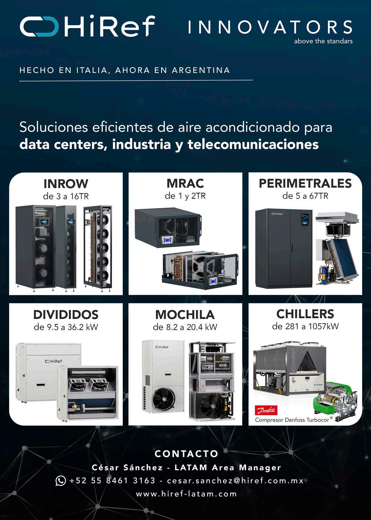 HiRef, empresa de origen italiano líder en el diseño y fabricación de sistemas de aire acondicionado de precisión para data centers, telecomunicaciones y otras instalaciones tecnológicas, anuncia con orgullo su llegada al mercado argentino. Este hito refuerza la presencia de HiRef en Latinoamérica, consolidando su compromiso con la innovación, la eficiencia energética y la sostenibilidad en proyectos de alta exigencia tecnológica.