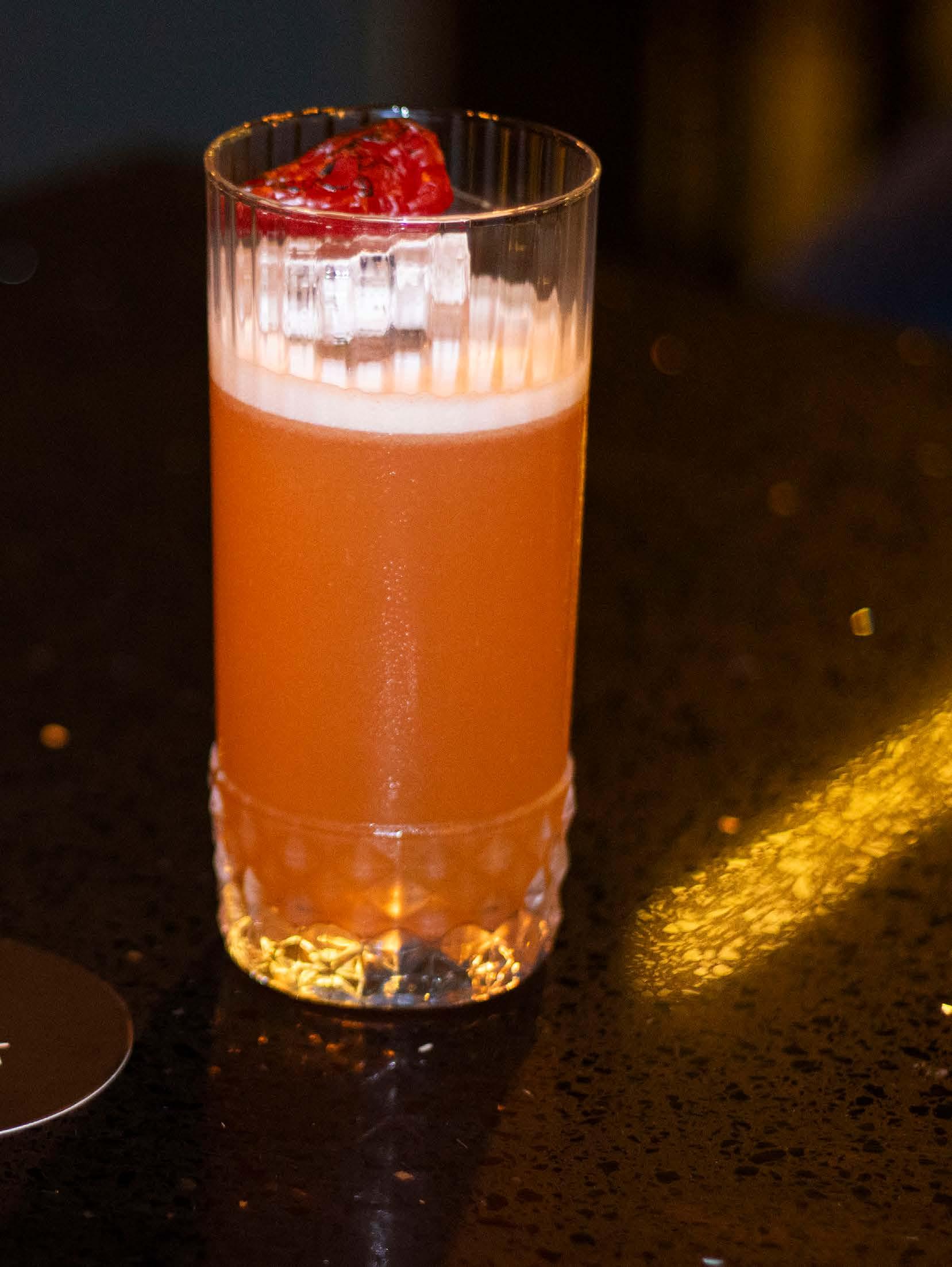 Por su parte, Alba Capsicum presenta una interesante combinación entre Johnnie Walker Black Label y Sinsonte (licor de ajíes peruanos). Ello sumado al jugo de piña, cordial de limón, sirop de kion y aro-