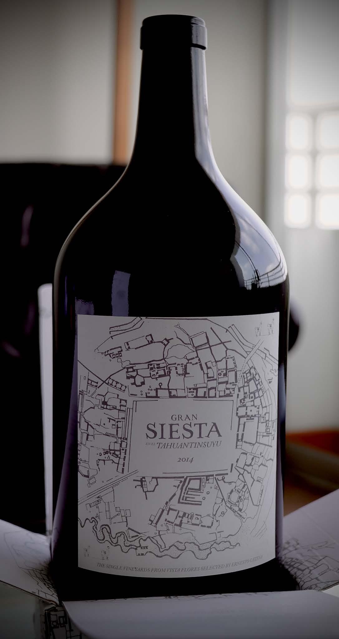 La línea Siesta acoge vinos varietales de guarda muy interesante. Esta línea cuenta con Malbec, Cabernet Sauvignon y Cabernet Franc. Todos son Single Vineyard, es decir, provienen de un solo viñedo. La etiqueta representa la vista aérea de los cuatro suyos. «Estamos diferenciando las alturas a fin de tener diversas expresiones en los vinos. Es nuestro homenaje a