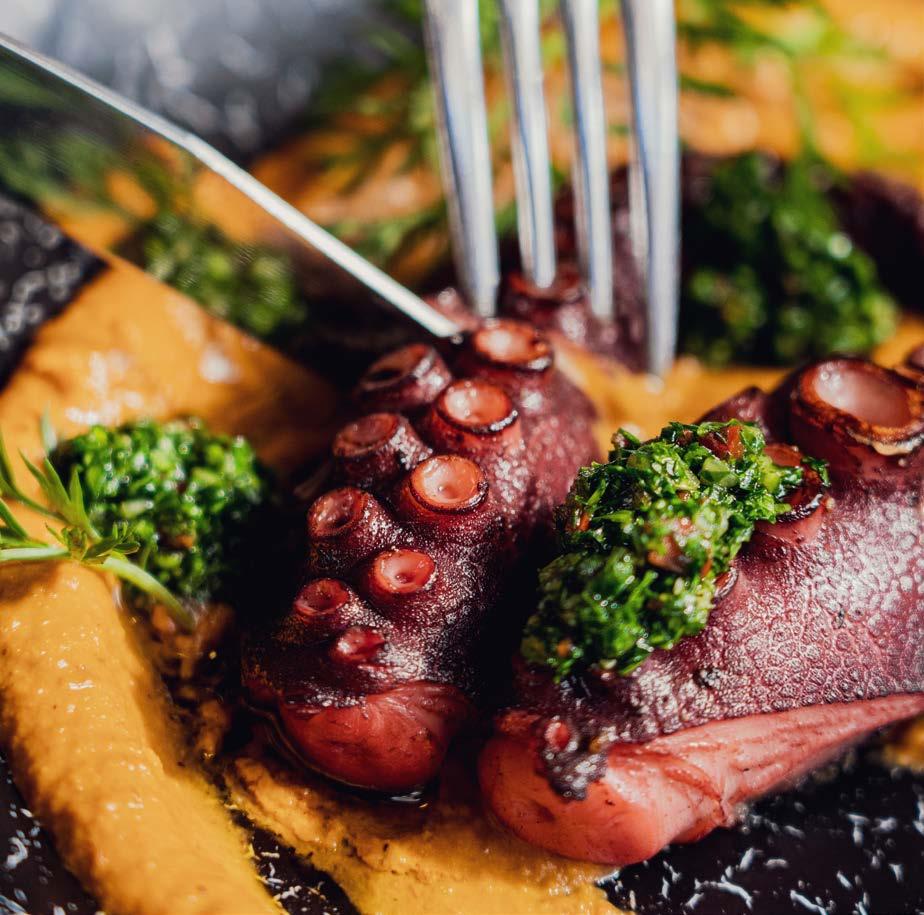 papa de temporada, ají carretillero, cebolla encurtida y huevo pochado; la Onion Soup Burger con cebolla en Brandy, alioli de romero y cheddar; Ensalada de Calamares con supremas de cítricos, crutones de bellaco, rúcula y vinagreta de Dijon; o la clásica Tortilla Española.