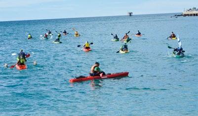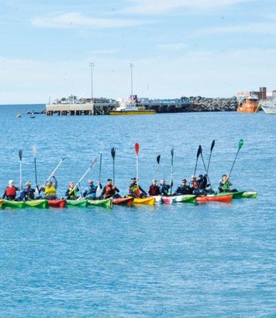 matutina, atardeceres violetas, rojos o anaranjados sobre el mar cristalino. Encuentros cercanos con la fauna autóctona, como los curiosos lobos marinos, delfines o toninas que juegan en las olas, o los petreles gigantes, que con su vuelo al ras imponen respeto en las épocas más frías. También la zona tiene su especial encanto debido a la vasta cantidad de playas y rompientes cercanas, tanto en Km 3, en el centro, como en Rada Tilly y en el sur con spots increíbles. En este deporte la edad no importa, sólo se necesita una