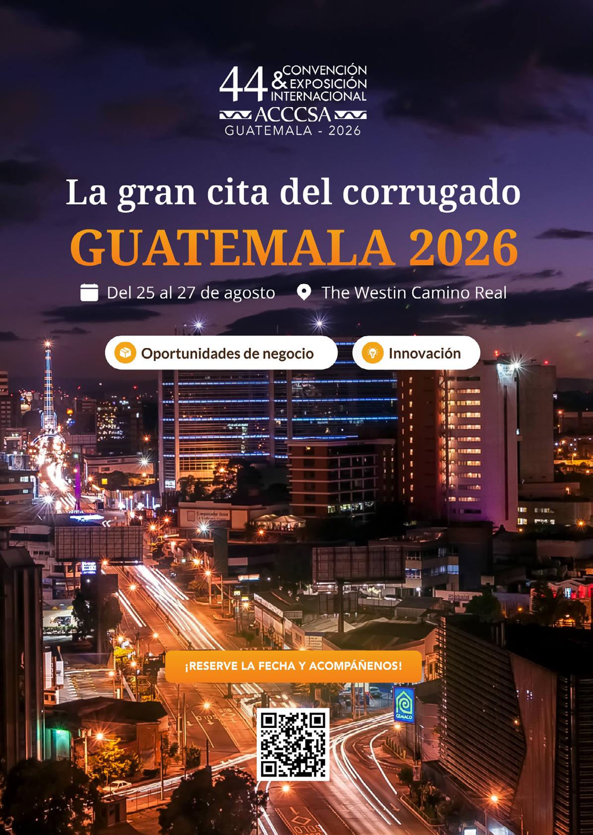 Del 25 al 27 de agosto de 2026, la Ciudad de Guatemala recibirá a la comunidad corrugadora en un espacio moderno, accesible y lleno de oportunidades.