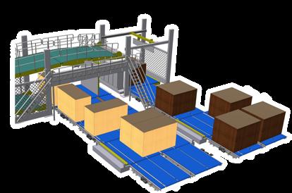 MINDA garantiza un transporte eficaz y una manipulación optimizada de las cargas que salen directamente desde la corrugadora. El proceso comienza con la recepción del bloque y transmisión toda la información de la corrugadora. Si es necesario, una unidad de giro opcional gira las cargas 90° mediante un mecanismo de elevación y giro.