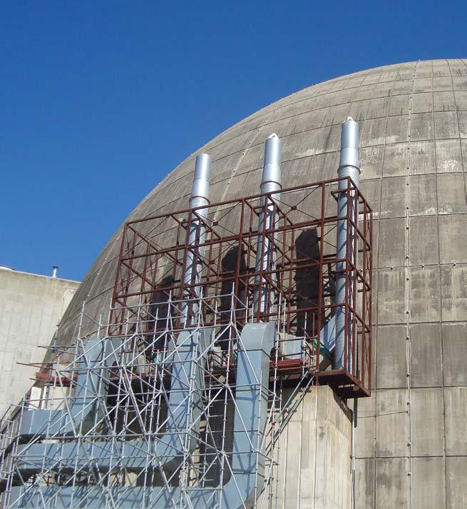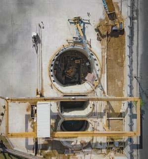 lecho del Río de La Plata. El diseño prevé 10.50 km de conducción y 1.50 km de difusión, con 37 risers los cuales, en etapa de operación, permitirán evacuar hasta 27 m3/ seg. Esta obra forma parte del proyecto Sistema Riachuelo, en el marco del saneamiento de la cuenca MatanzaRiachuelo. La construcción del conducto se ejecuta con una tuneladora tipo TBM-EPB de doble blindaje, en un ambiente de excavación de arena a 5 bares de presión en el frente. La obra incluye la construcción de una cámara de carga de cuatro lóbulos, con un diámetro de 16 m cada uno, que en la etapa de excavación oficia de pozo de ataque. Para la ejecución de los muros de esta cámara se utilizó la técnica de hidrofresado, llegando a una profundidad de fundación de 50 m medida desde terreno natural. Para la construcción de los raisers, se ha previsto una solución innovadora consistente en excavar los mismos desde dentro del conducto hacia el lecho del río, mediante un cabezal de hidrodemolición que arrastra un tubo de acero inoxidable de 70 cm de diámetro. El proyecto prevé emplear 100.000 m3 de hormigón, 10.000 tn de acero y 3.6 millones de horas hombre”.