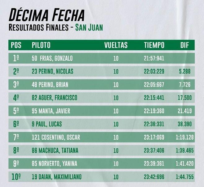 un muy buen 4° puesto. En Posadas llegó 5° y en San Juan, en el “Desafío de las Estrellas”, largó 42°