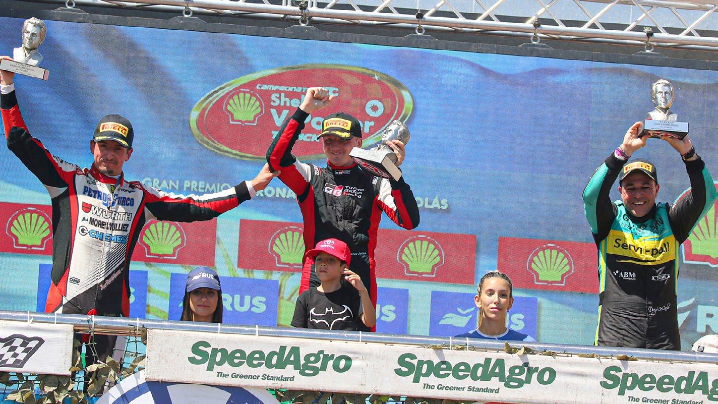 Se bajó del Torino del Maquin Parts extenuado (en el habitáculo se registró más de 60°C), abrazó a su mamá, a su papá y a su pareja. Se dirigió al podio, subió al peldaño más alto y levantó la Copa de Oro. Recién ahí sonrió y completó esa escalera que comenzó allá lejos, a los 4 años, en la Patagonia.