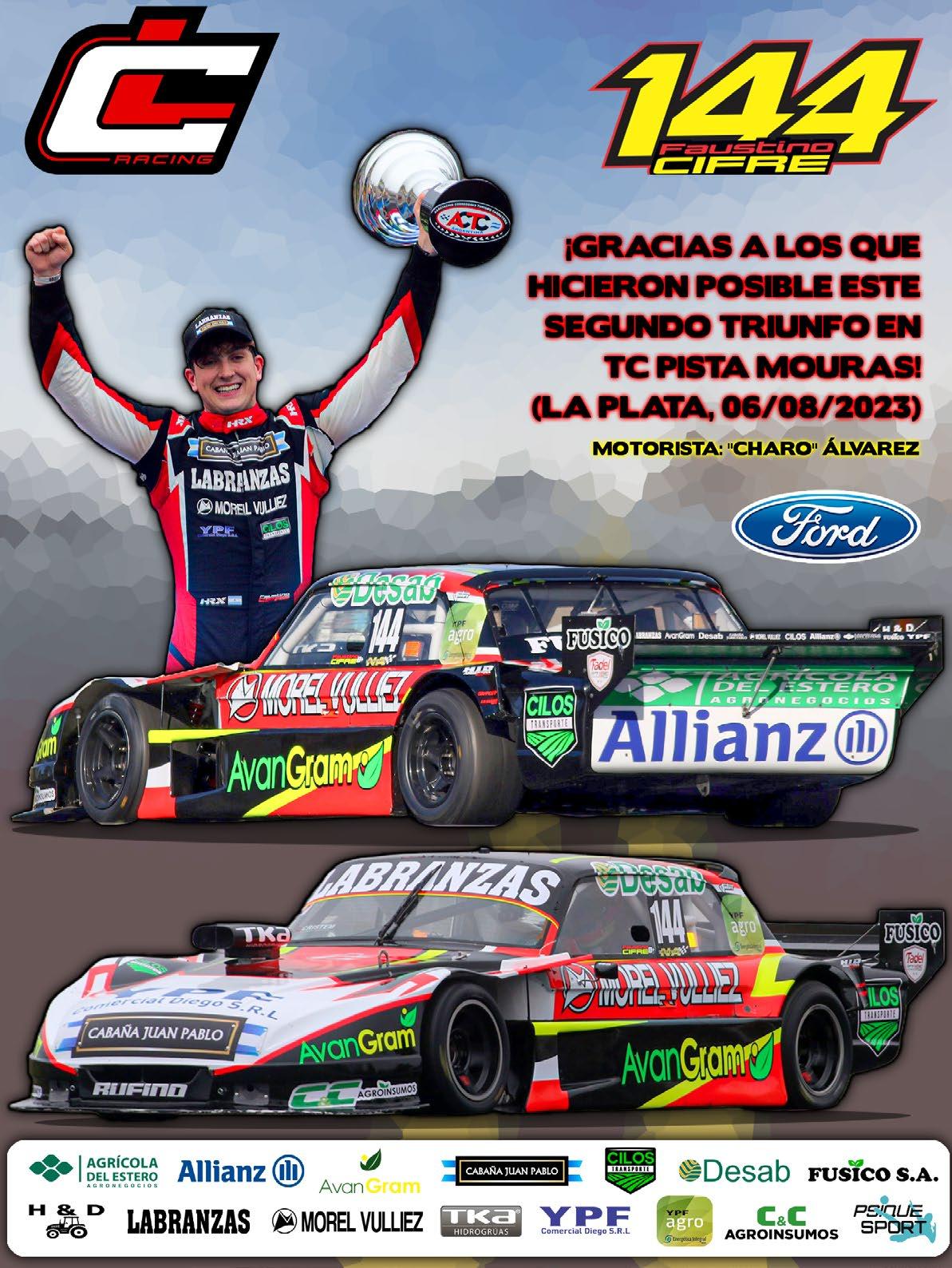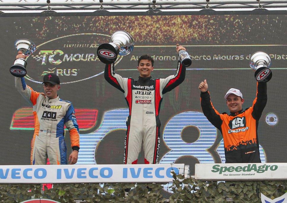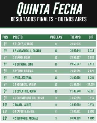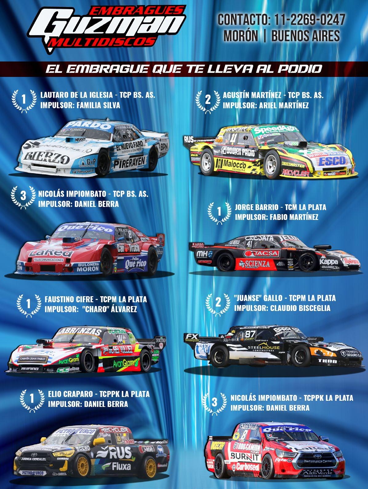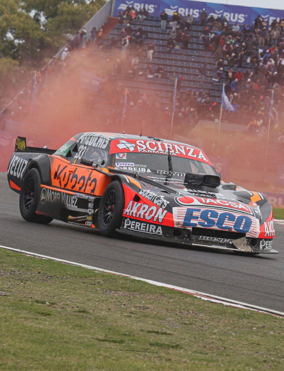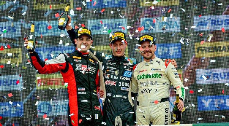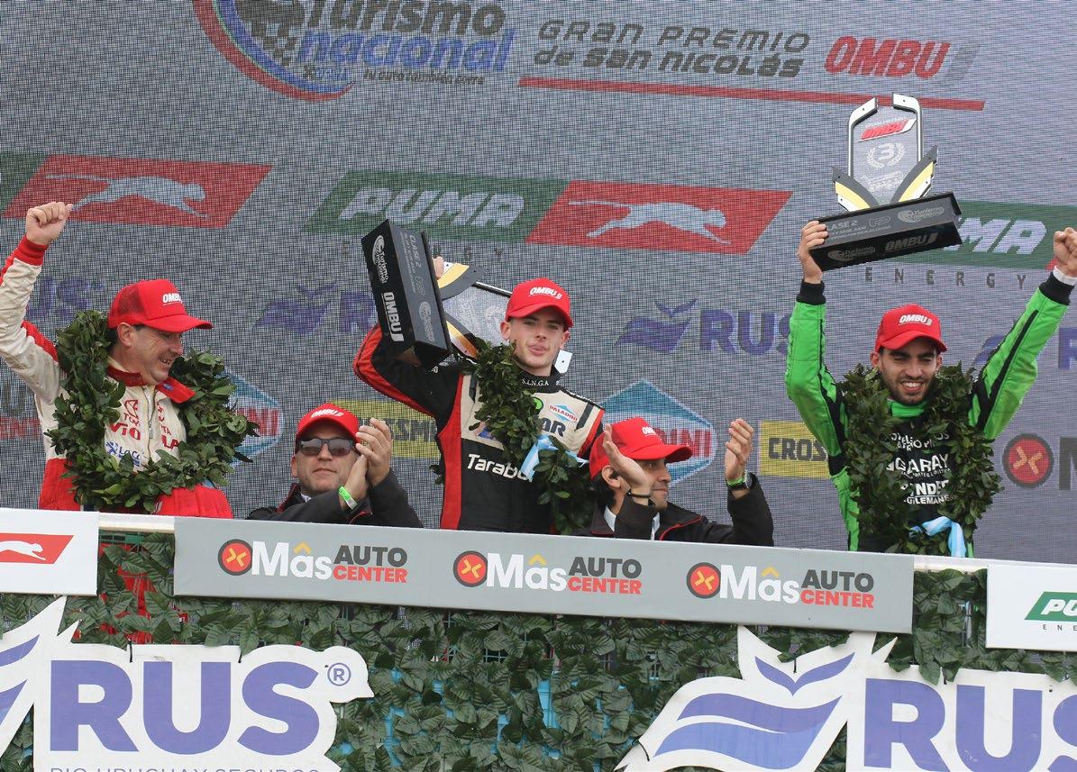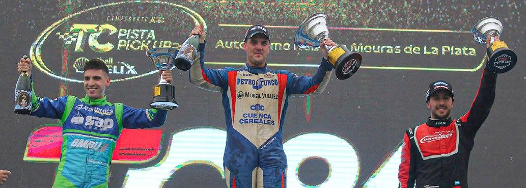 daba. Sobre el final me tiré a pasarlo a Valen, pero no pude y estoy muy contento con este 1-2 del equipo. Ojalá que sigamos así para conseguir la primera victoria” . A su lado escuchaba atentamente Lambiris, quien ingresó por 12ª vez consecutiva a la Copa de Oro y buscará, en las cinco fechas que quedan, el triunfo que lo ponga como candidato a la corona. “Hicimos una tremenda carrera y teníamos un tremendo auto. Lo sabía al momento de ser los más rápidos en nuestro grupo, por eso quiero felicitar a todo el equipo. No pensé que íbamos a llegar hasta acá, pero aproveché situaciones, se fueron dando las maniobras y en la última vuelta pude pasar a Ayrton (Londero). Clasificamos de nuevo a la Copa, no ganamos todavía y eso me molesta, pero vamos a seguir trabajando para seguir funcionando así y tratar de conseguir la victoria” , dijo el uruguayo, que se clasificó 40°, fue 6° en la serie, largó 17° y trepó hasta el podio.