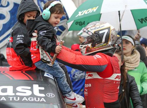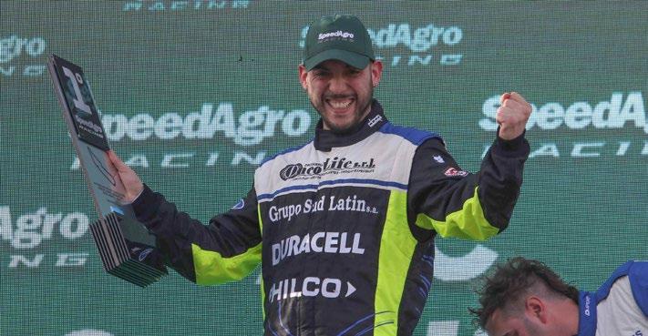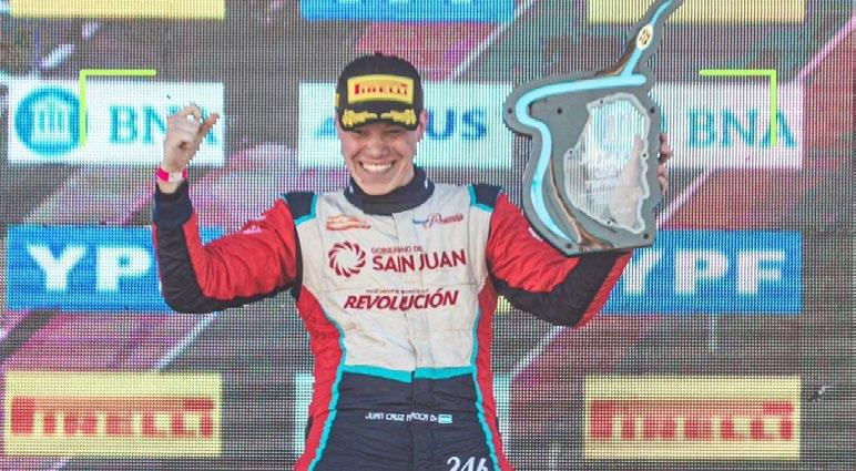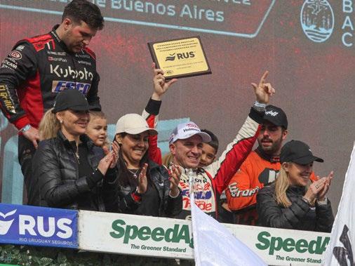 sando-, por lo que Aguirre se metió como escolta de su compañero de equipo en el JP Carrera. Pero en el giro siguiente, Marcelo Agrelo quedó atrapado en la cama de leca de Salotto y nuevamente entró el Pace Car. Cuando las máquinas aceleraron otra vez, Aguirre repitió la maniobra en la “S”, saltó a la punta de la prueba y se encaminó hacia su mejor resultado del año. “Fue una gran victoria porque veníamos pasando un mal momento con los motores, la veníamos sufriendo mucho y se nos dio, por eso se la quiero dedicar a todo el equipo y en especial a Ezequiel (Giustozzi), que nunca bajó los brazos. Cuando pasé a Santi pensé que era mi momento para entrar a la Copa y sumar los ocho puntos de bonus, fue una largada limpia, me tocó quedar adelante a mí y bueno, me servía. Ganamos con mucho huevo…”, expresó el “Torpedo”.