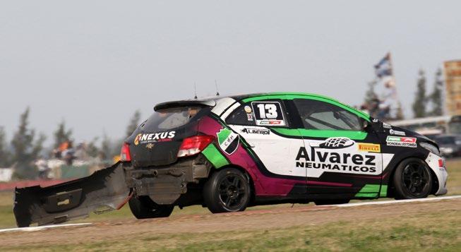 En el relanzamiento, Álvarez se tiró de nuevo por afuera, Quijada le porfió y se descalzó de la pista –rompió la trompa del Dodge y se fue retra -
