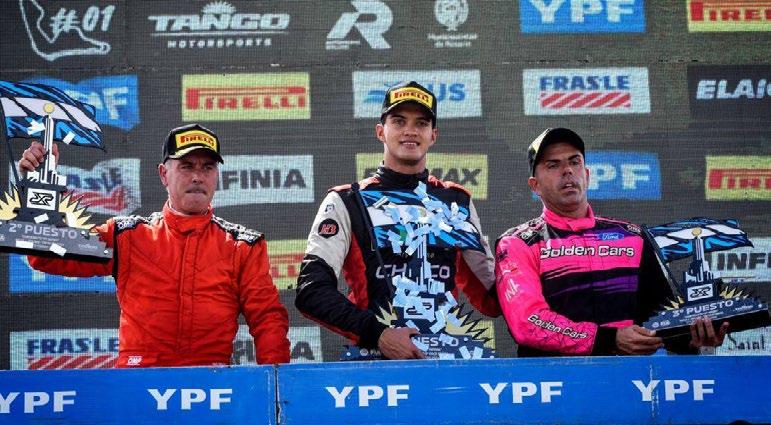 lugar. Festejó con los suyos al pie del podio, pero unos minutos después lo anoticiaron sobre la sanción por el roce a Landa y la alegría recaló en Chapur, quien tras una impresionante remontada, había llegado 3° detrás de Ebarlín. El cordobés subió a lo más alto y celebró, pero un rato después, en la Técnica, le borraron la sonrisa: el motor Cherokee preparado por Fabián Giustozzi estaba pasado una décima en la compresión (dio 10.6 y reglamentariamente el máximo es 10.5 a 1). “Son cosas que pasan”, tiró “Metralleta” mientras Tobías se abrazaba con los miembros de su equipo. “La verdad es que no me lo esperaba, porque en la última vuelta pasé como séptimo u octavo por la recta. Pero pudimos sortear el trompo de Marcos, ahí gané puestos y bueno, nos encontramos con el triunfo. Es algo soñado”, señaló el sanjuanino, quien tampoco imaginó un arranque así.