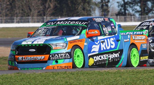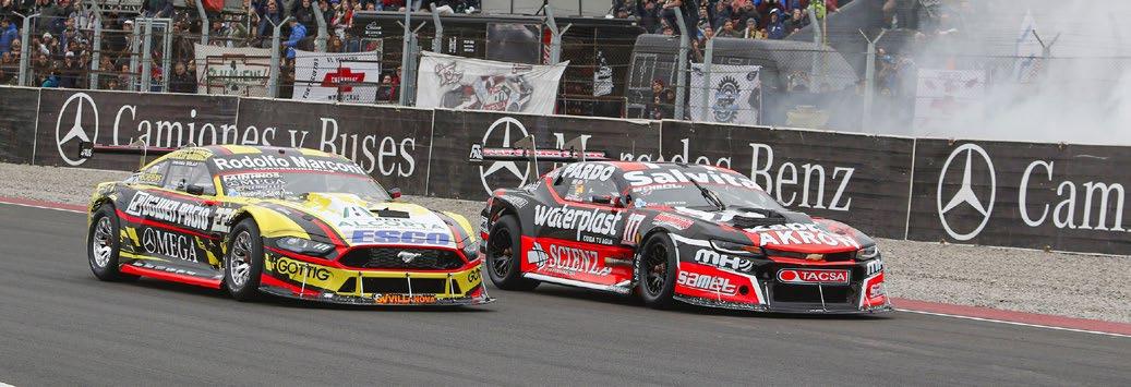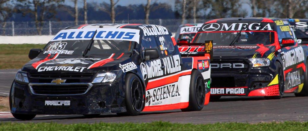 locidad para apagar las llamas en el Camaro de Gastón Mazzacane (ver Fue solo…) y en el relanzamiento nuevamente se metió adelante por afuera. Con el paso de las rondas, Trucco se despegó de Santero con un funcionamiento superlativo (“Clasifiqué en todas las vueltas”, confesó), aunque en la 12ª vuelta, otra vez entró el Auto de Seguridad por el despiste de Juan Garbelino en Ascari. Con el semáforo verde, Santero se tiró con todo por adentro y salió al frente del pelotón a la salida del Ciervo, en tanto que Marcos Quijada le ganaba el 3° puesto a Canapino. Sin embargo, otro Pace Car debió interrumpir la velocidad para sacar al Mustang de Nicolás Trosset de la leca en Salotto y le devolvió las ilusiones a “Truquito”. “El que quedara adelante en el Ciervo, ganaba”, dijo el ganador, quien también aguantó por adentro en el reinicio y salió bien plantado a la recta antes de Salotto, pero Santero lo porfió por afuera y recién aflojó en medio del curvón. “Estoy lleno de emoción. Son muchos años. Empecé en el TC Pista, con mi equipo; después lo tuve que cerrar e ir por otro lado. Gané en 2015, en Olavarría, donde me terminan sacando el triunfo; venía ganando en pila de carreras, que se me esca-
