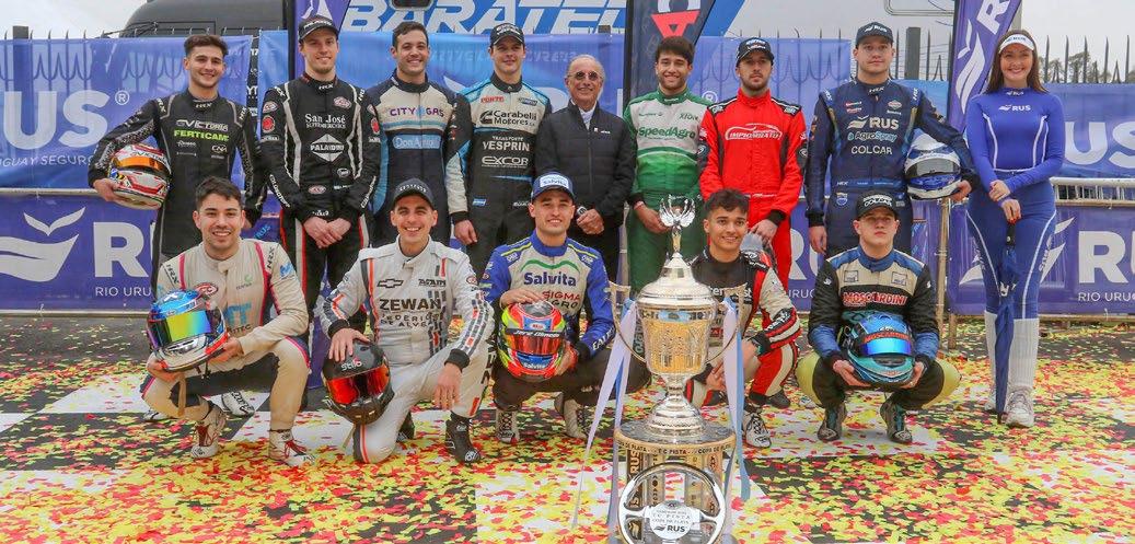 10 de los 12 pilotos clasificados a la Copa de Oro, acompañados por Juan Carlos Lucio Godoy (Presidente Ejecutivo de RUS). De izq. a der.: arriba Ebarlín, Lambiris, Mangoni, Quijada, Aguirre y Urcera; abajo Werner, Ciantini, De Benedictis y Risatti. Faltan Santero (ganador Etapa Regular) y Gini.