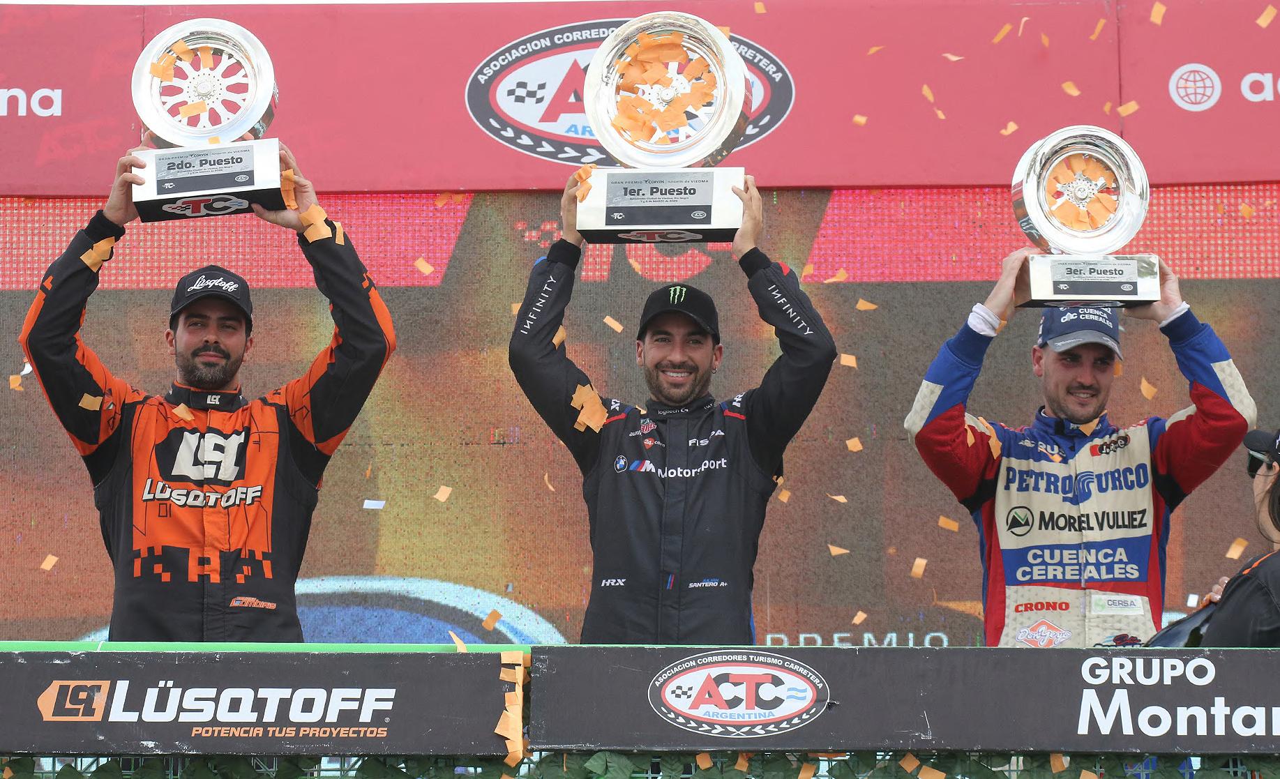 Eso sí, Santero habló en la pista. Se quedó con el 1 en la clasificación, con récord del circuito incluido, venció en la serie con autoridad -le sacó más de dos segundos a Mauricio Lambiris- y en la final aguantó cada ataque de Elio Craparo en la largada y en los tres relanzamientos en los que estuvo del lado externo, y en el último reinicio con el uruguayo a su lado. “Estoy muy contento por el equipo más que nada. Por todos los mecánicos, por Mauri Candela, los ingenieros, los sponsors, por BMW. Nos fuimos golpeados de El Calafate, después de la resolución técnica, en donde fuimos bien excluidos por un error, estábamos muy amargados, y ahora nos tomamos una revancha con un gran sabor dulce”, indicó el ganador.