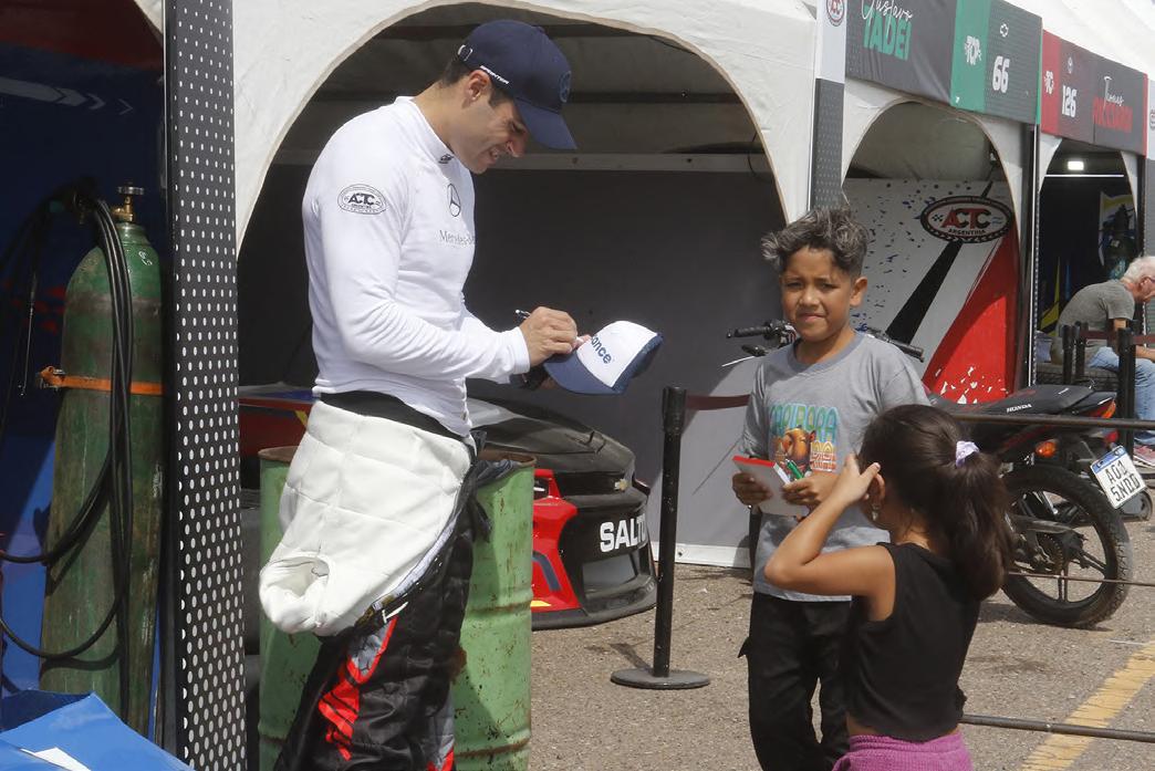 Diego Azar, piloto y representante de una marca como Mercedes Benz, se dispone a la firma de autógrafos.