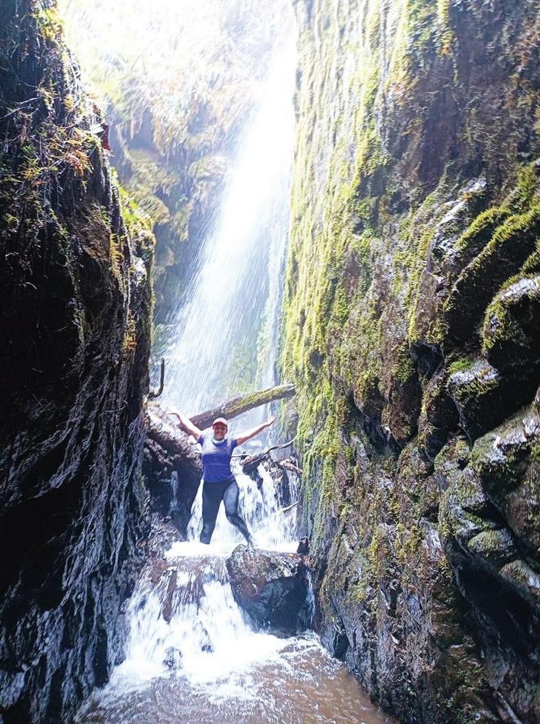 piedra cuyo nivel de agua llega a un metro de altura lo cual permite ingresar caminando y llegar justamente hasta la caída de agua, su sensación es espectacular ponerse debajo de este chorro y recibir ese golpe de agua no tiene explicación, además que indican su poder curativo, se lo tiene que hacer cuando se visite ese espectacular sitio.