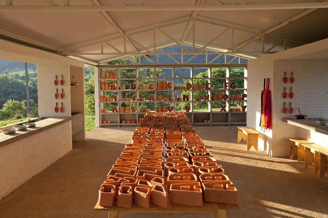 “Criado inicialmente para uma exposição temporária no Museu de Arte da Pampulha, o trabalho brinca com conceitos do texto homônimo de Heidegger: Terra, mundo, instrumento, obra de arte. Na sala, antesdedicadaaoeducativo,dispustodasasletrasdoalfabeto em forma de vasos, terra, sementes e instrumentos de jardinagem.Ofereciaaosvisitantesapossibilidadedeescrever, tomarseutempoesujarsuasmãosdeterra.‘Seráqueelesvão participar?’,perguntou-meocurador.‘Éumaaposta’,eudisse. ‘Mas será que vão escrever coisas interessantes?’