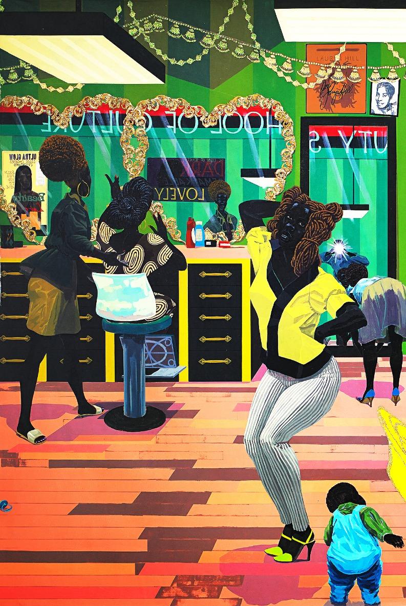 (1993), que retrata um grupo de homens negros em uma barbearia, foi a primeiraobradeMarshalladquiridaporum museu. Ela combina diferentes estilos da história da arte e funciona também como ummonumentoao“estilonegro”.