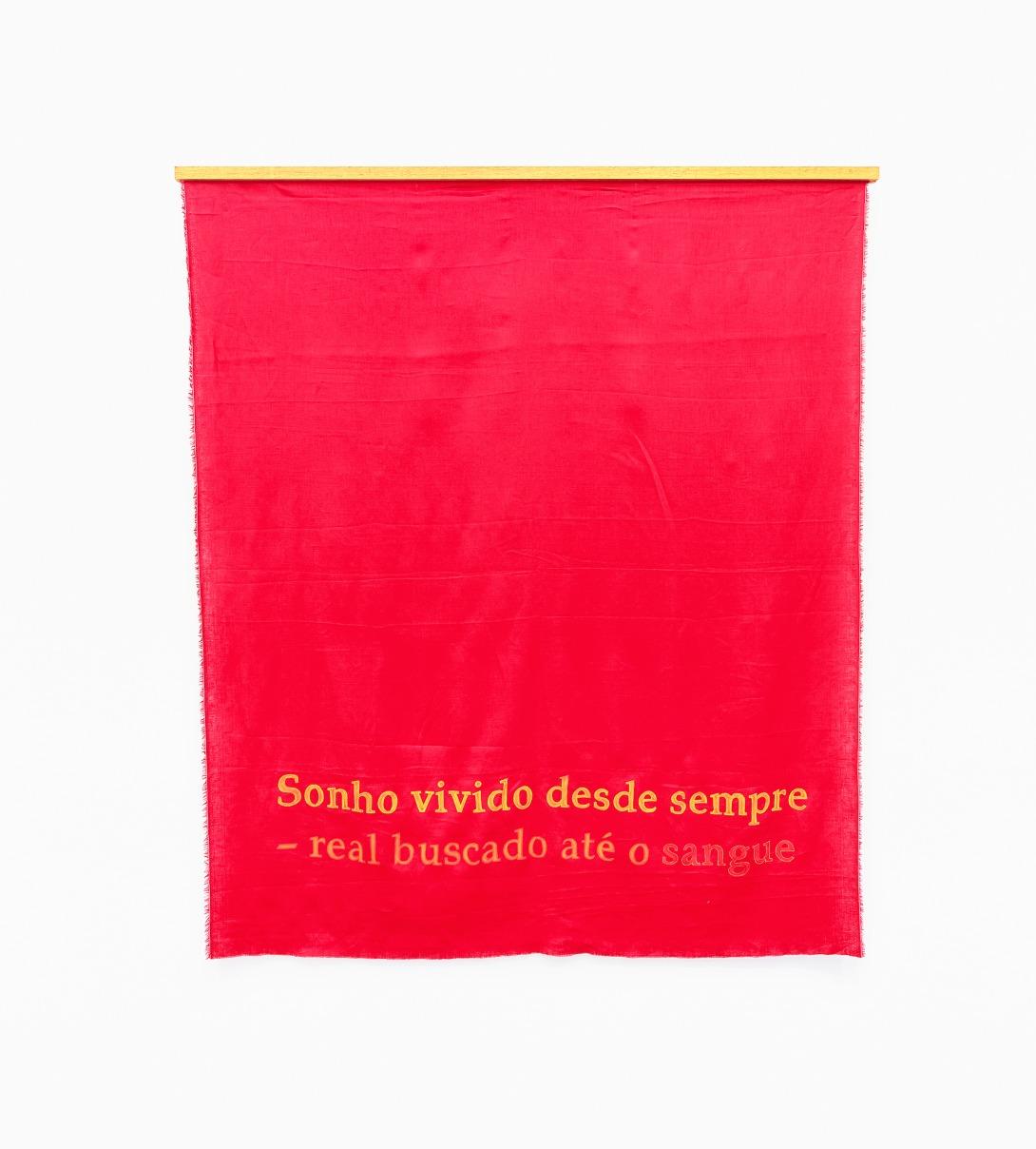 “DeOridesFontela,esteé umdosdeztrechoscom a palavra "sonho" que pintocombastãoaóleo sobre linhos coloridos que se agitam, dependurados das paredes e do teto, na série .