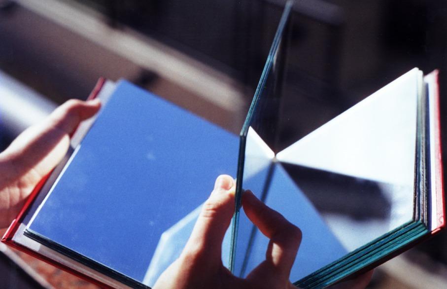 “Quando eu era estudante de artes na Escola Guignard, a Piti (Maria Angélica Melendi) nos deu como tarefa fazer um livro de artista. ‘O que seria um livro de artista?’, pensei. O que é um livro? O que é uma artista? Com os livros, eu tinha intimidade. Era leitora. Artista,aindanão. Lembrei de um conto de JorgeLuisBorgeschamado , "porque nem o livronemaareiatemprincípioou fim."Apersonagemtopacomum livro que vai sendo descrito como sagrado, diabólico, impossí-vel, monstruoso-umlivrocujaspáginasnunca serepetem.Fiqueicheiadeperguntas:nãoseriam todos os livros infinitos, uma vez que toda história muda a cada novo leitor, a cada leitura, releitura, a cada contexto? Borges conversava com Heráclito sobre a ideia de impermanência? Por que areia, essa matéria dura que escorrepelasmãos?Agoraeutinhaumproblema:comodar materialidade a algo tão abstrato, como transformar pensamentoemmatériaquefazpensar? Fizumlivrocujaspáginaseramespelhos.Foiomeuprimeiro trabalho. Encontrei ali algumas questões que apontavam o que viria a ser minha obra: relações com a literatura, a palavra,comotempo,comooutroeoentorno.Acheientão quepodiaserartista.”