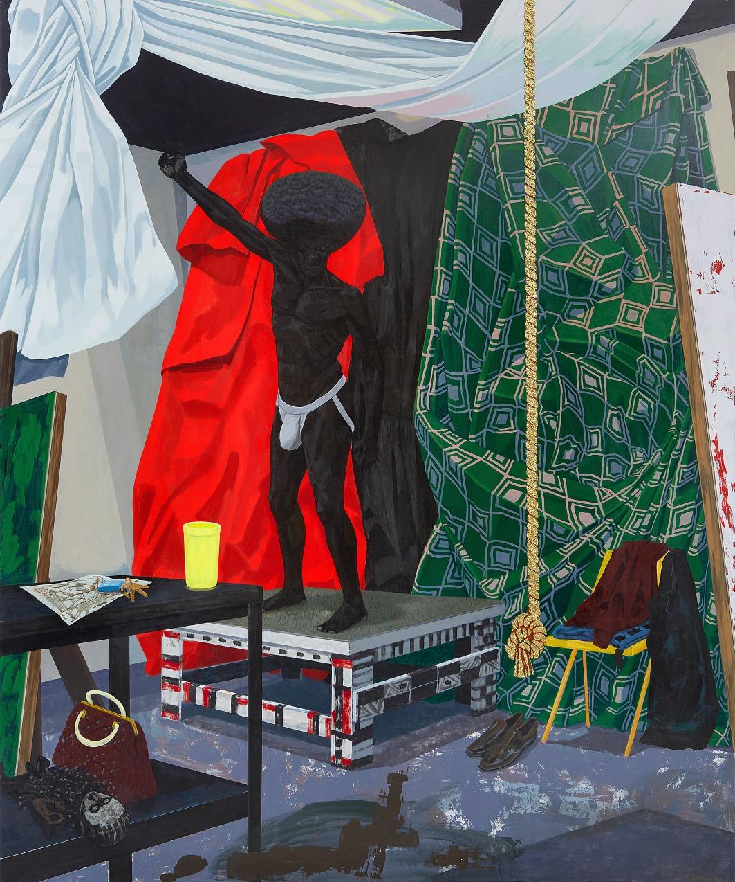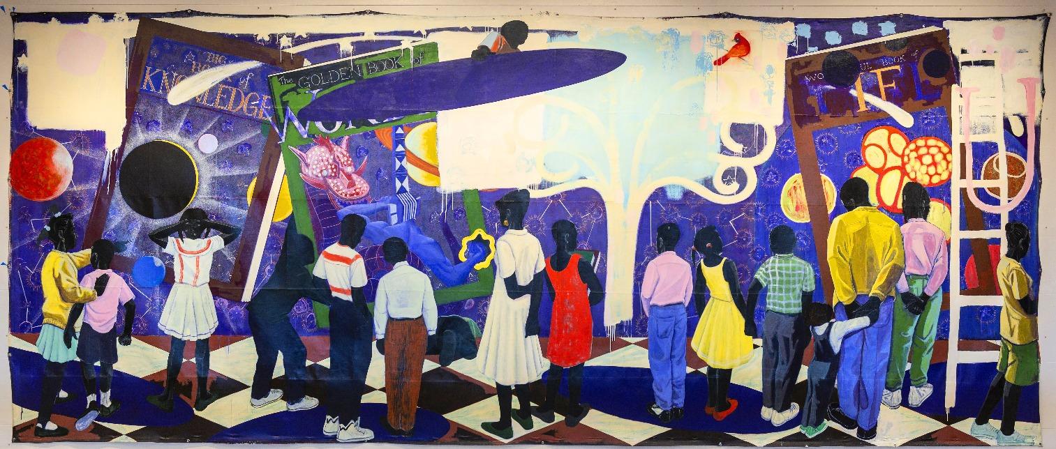Muitas das obras apresentadas nesta exposição abordam momentos da história negra –desde a travessia do Atlântico e as rebeliõesdepessoasescravizadas até os movimentos pelos Direitos Civis e pelo Poder Negro, que formaram o pano de fundo da infância do artista. Mais recentemente, ao desafiar representações romantizadas do passado africano, suas pinturas têm enfrentado temas históricos difíceisqueoutrospreferemevitar.