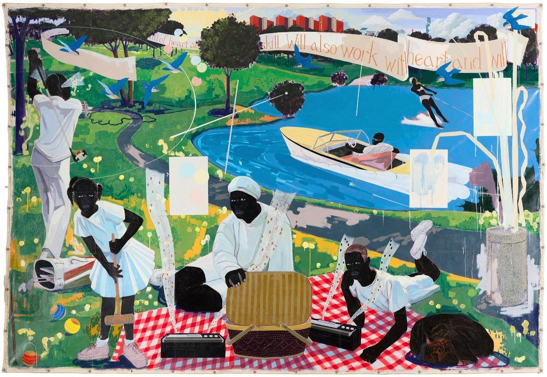 Outras obras provocam reflexões sobre a própria época de Marshall: (2015) foi criada logo após o início do movimento , quandomanifestantesdefendiama ideiade“desfinanciarapolícia”. Juntas, essas pinturas expressam uma ampla gama de experiências e atitudes negras em relação à América,quevãodesdeumaalegria profunda até uma ambivalência intensaeinquietante.