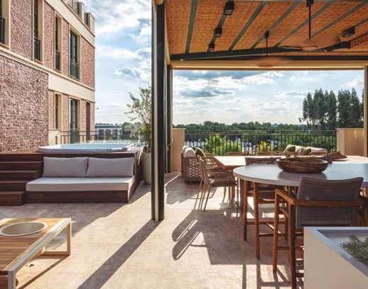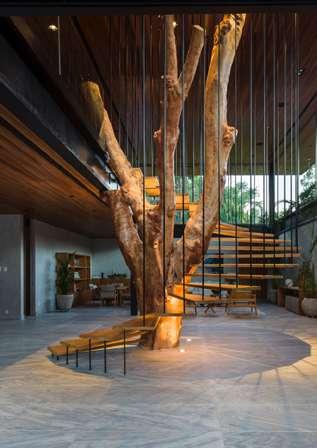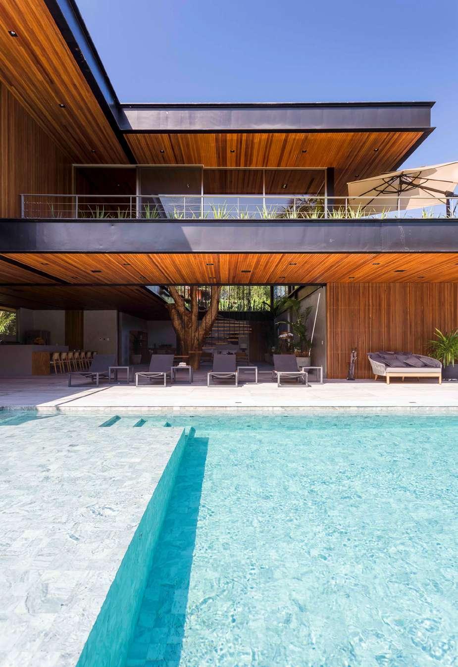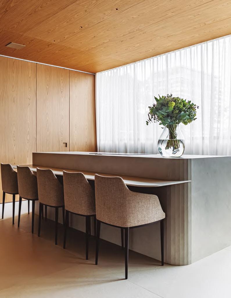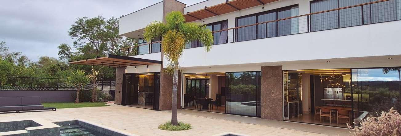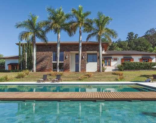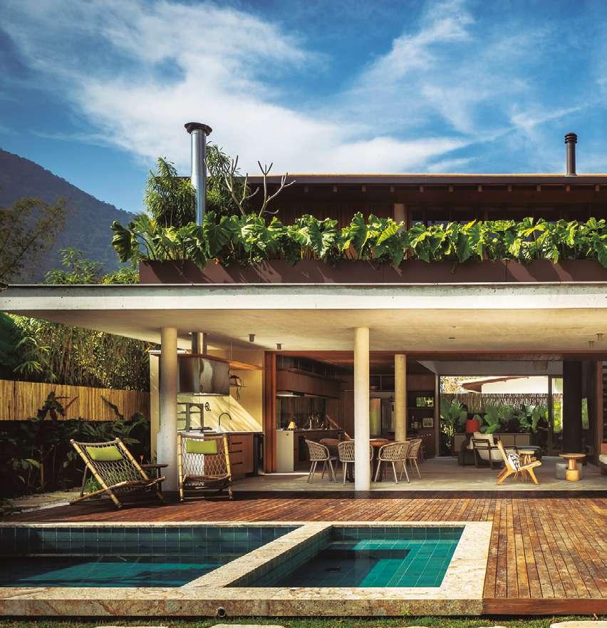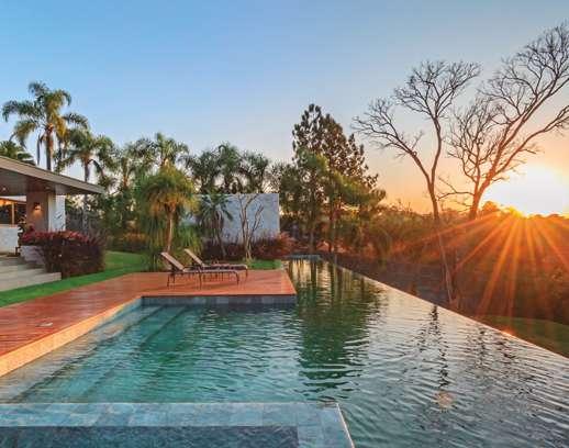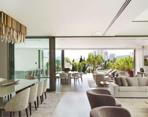 da arquitetura contemporânea e da integração entre interior e exterior, traduzidos em materiais naturais, texturas aconchegantes e uma iluminação que valoriza volumes e acabamentos.