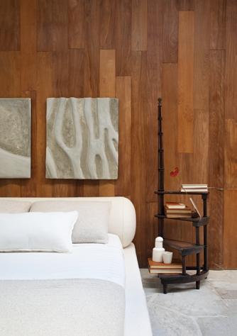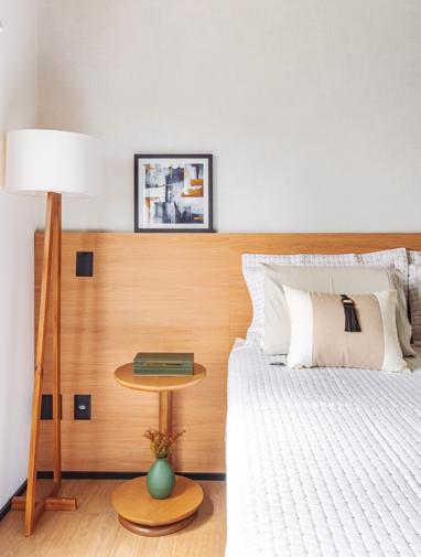 No dormitório, a cabeceira antiga deu lugar a uma versão discreta e funcional da Mobille Tatuapé, com iluminação embutida que garante mais conforto ao ambiente