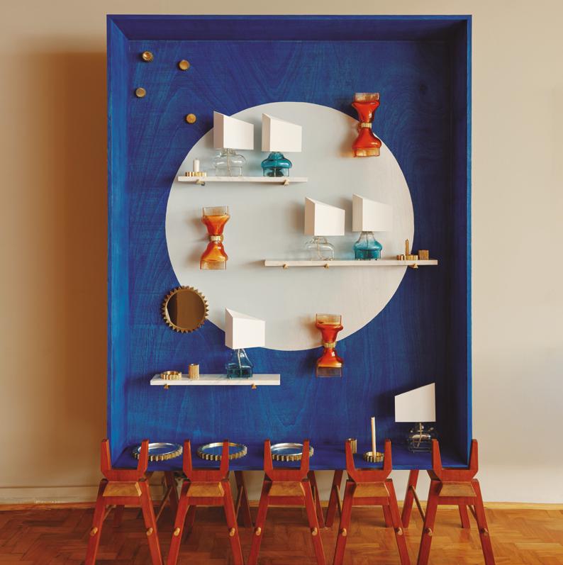 utilização no futuro? Nesta categoria estão os móveis antigos, como a cadeira Gobbi do Apartamento 61; estão também aqueles feitos a partir de outras coisas, como o Fogo de Chão da Loja Moringa, ou o banco Escamas, de Sofia Venetucci, feito a partir de sobras da indústria cenográfica; e a simpática cadeira Portuguesa, de Paulo Alves, feita a partir de batentes de peroba descartados.