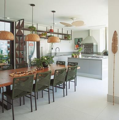Em São Caetano do Sul, um apartamento de 153m² foi transformado em santuário onde elementos naturais encontram o cotidiano. Inspirado em praia, montanha e floresta, o projeto traduz o orgânico em madeiras nobres, pedras naturais e paleta de cores claras e suaves. O living abriga a adega climatizada, a pedra natural do painel da mesa de jantar se destaca como protagonista, enquanto a churrasqueira compacta ganhou sofisticação com banquetas de madeira e couro. A filosofia do projeto é clara: nada foi escolhido apenas para comprar, mas para sentir e amar. A parceria com a Portobello foi essencial para materializar o conceito. “A marca já diz tudo: textura, nuances, história e inspirações em lugares únicos de vários países diferentes. Usamos diferentes texturas e desenhos nas peças para realmente retratar a natureza dentro dos ambientes”, explica a arquiteta Gisele Pacheco, que após 25 anos de carreira consolida um estilo atemporal onde cada escolha celebra o verdadeiro significado de lar.