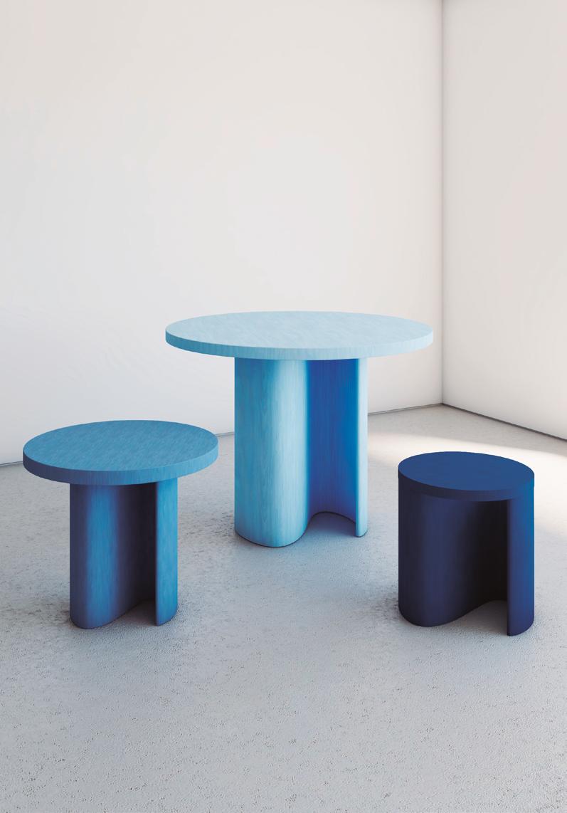 A coleção Calmaria II, de Ádamo Thiers, traz novas cores e peças à narrativa iniciada no ano passado. Feitas em madeira tingida que mantém os veios visíveis, elas evocam a transparência da água e conectam-se à paisagem pessoal do designer em Fortaleza. Produzidas sob demanda, com materiais certificados e acabamento artesanal, as peças combinam beleza, funcionalidade e sustentabilidade.