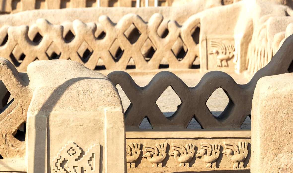 Sus muros están decorados con figuras de dragones y arcoíris, de ahí el nombre. Estos símbolos están relacionados con la fertilidad y la abundancia, lo que pone de manifiesto la forma de comunicación que tenían los Chimú con el mundo superior.