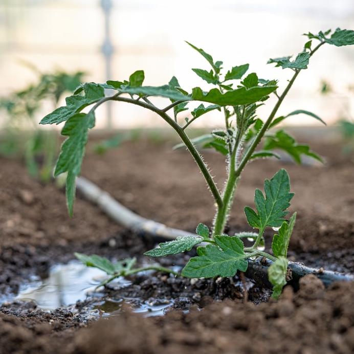 A menudo se promueve la microirrigación como una tecnología que puede aumentar la eficiencia de la aplicación del agua y mejorar la producción y la calidad de los cultivos. El sistema de subirrigación también se aplica para la producción de muchos cultivos hidropónicos ornamentales. Sin embargo, la tendencia de las sales a acumularse en la parte superior de la zona radicular representa un inconveniente. Con tomates de invernadero a base de suelo (Solanum lycopersicum) en un ambiente tropical indicó que al aplicar el riego por goteo, el ahorro de agua dentro del invernadero podría ser hasta un 20% a 25% más alto en comparación con un sistema agrícola de riego por goteo a campo abierto.