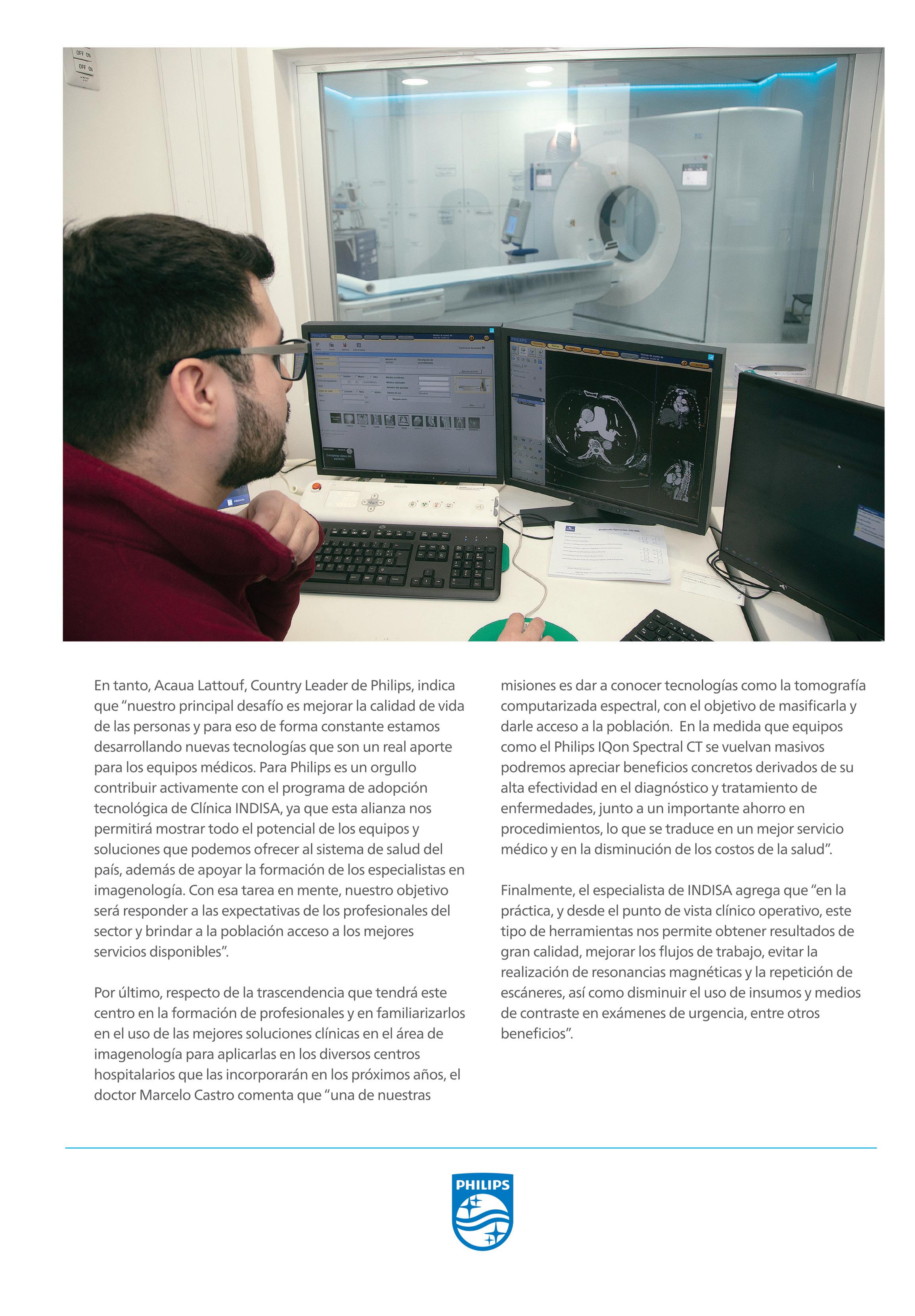 Esta tecnología permite que el paciente tenga una exposición menor y una dosis más baja en un examen, porque es mucho más rápido y preciso. Y en términos de sostenibilidad, el examen se realiza un 30, 40 ó 50% más rápido que antes con la tecnología disponible en el mercado. Este tipo de innovación tiene una visión de líneas de atención y tecnologías específicas que respaldan este enfoque.