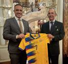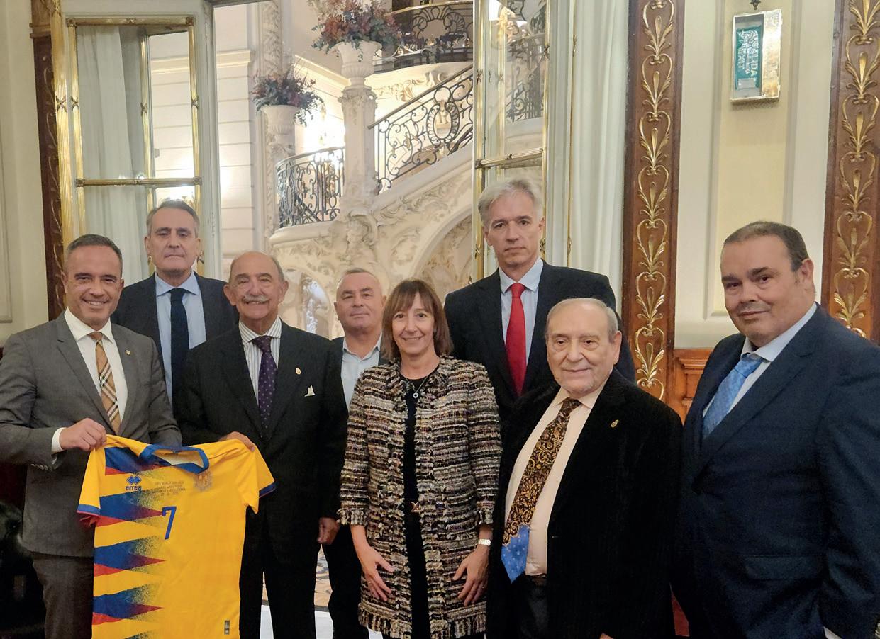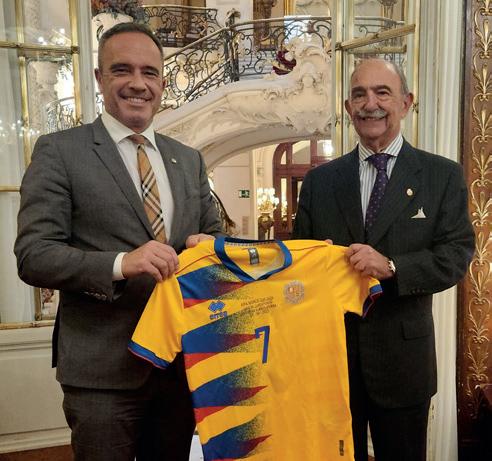 Seguimos creciendo. La Embajada de Andorra se incorpora a la Expo Fútbol por la Paz auspiciada por la Academia de la Diplomacia del Reino de España y LALIGA. El Secretario de Estado para el Deporte, Alain Cabanes y la Embajadora Eva Descarrega junto al Presidente de la Junta de Embajadores de la Academia de la Diplomacia, Embajador Rafael Fernández-Pita; José Montero, Director General de Asuntos Públicos y Relaciones Institucionales de LALIGA; Román Villaescusa y Santiago Manuel García de la ADESP - Asociación del Deporte Español; han acudido a la entrega de la camiseta junto al Presidente Ejecutivo de la Academia de la Diplomacia, Santiago Velo de Antelo. Ya son cien las embajadas que participan de esta Expo itinerante que lleva un mensaje de paz y concordia entre las naciones con la exhibición de las camisetas nacionales. Este año se han visitado con la exposición y la asistencia de las máximas autoridades las ciudades de Oviedo, Badajoz, Granada y Lisboa. El objetivo es que la Expo siga visitando todas las ciudades de España y Portugal.•